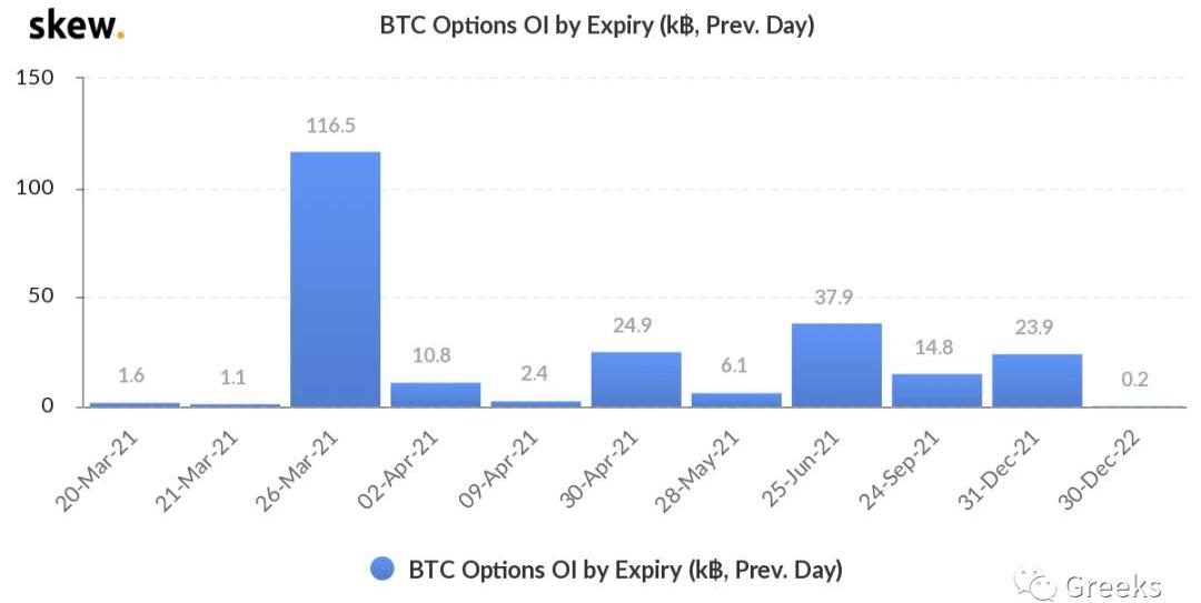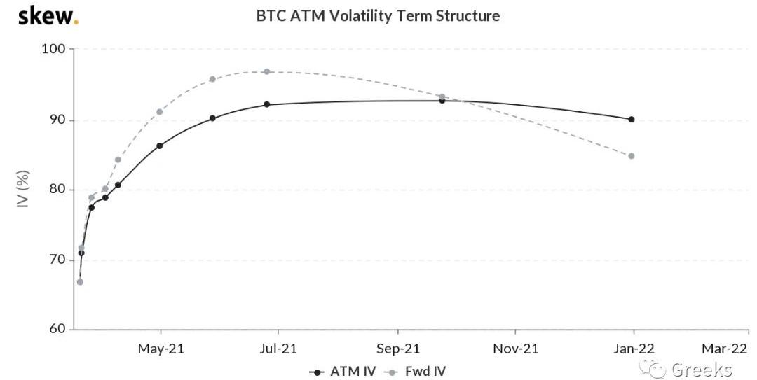 XRP/HKD-5.5%播報數據由Greeks.live和Skew.com提供。比特幣的大幅下跌一般有兩種形式,一種是加速上升然后突然閃崩,另一種是在某一支撐點位橫盤之后再次崩盤式下跌。目前比特幣在歷史最高點附近橫盤,形態很像是12月初的狀態,比特幣很少有在這個形態下暴跌的歷史。BTC歷史波動率10d74%30d84%90d93%1Y69%期權成交量10億美元,期權持倉量為120億美元。各標準化期限隱含波動率:今日:1m84%,3m92%,6m92%3/19:1m90%,3m96%,6m96%比特幣長時間的橫盤疊加進入交割周,造成各主要期限IV下降。目前月期權IV已經跌至85%以下,看好比特幣的投資者建立一些看漲期權倉位是劃得來的。