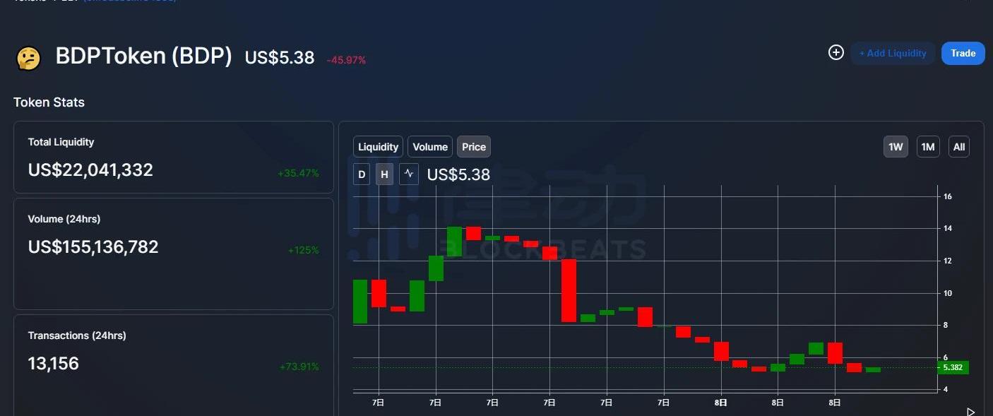 雖然看起來挖礦收益十分高,但也有用戶因參與WETH+BDP池挖礦而造成損失的情況。由于目前BDP/ETH和bALPHA/ETH兩個挖礦池收益極高,分別為3251%和5525%。因此在開始有不少用戶大量買入BDP和bALPHA兩種代幣來進行挖礦。根據Uniswap上BDP價格可見,在3月7日時,BDP價格最高沖至14美元,而隨后大幅回落到5.4美元左右,日內跌幅45%。