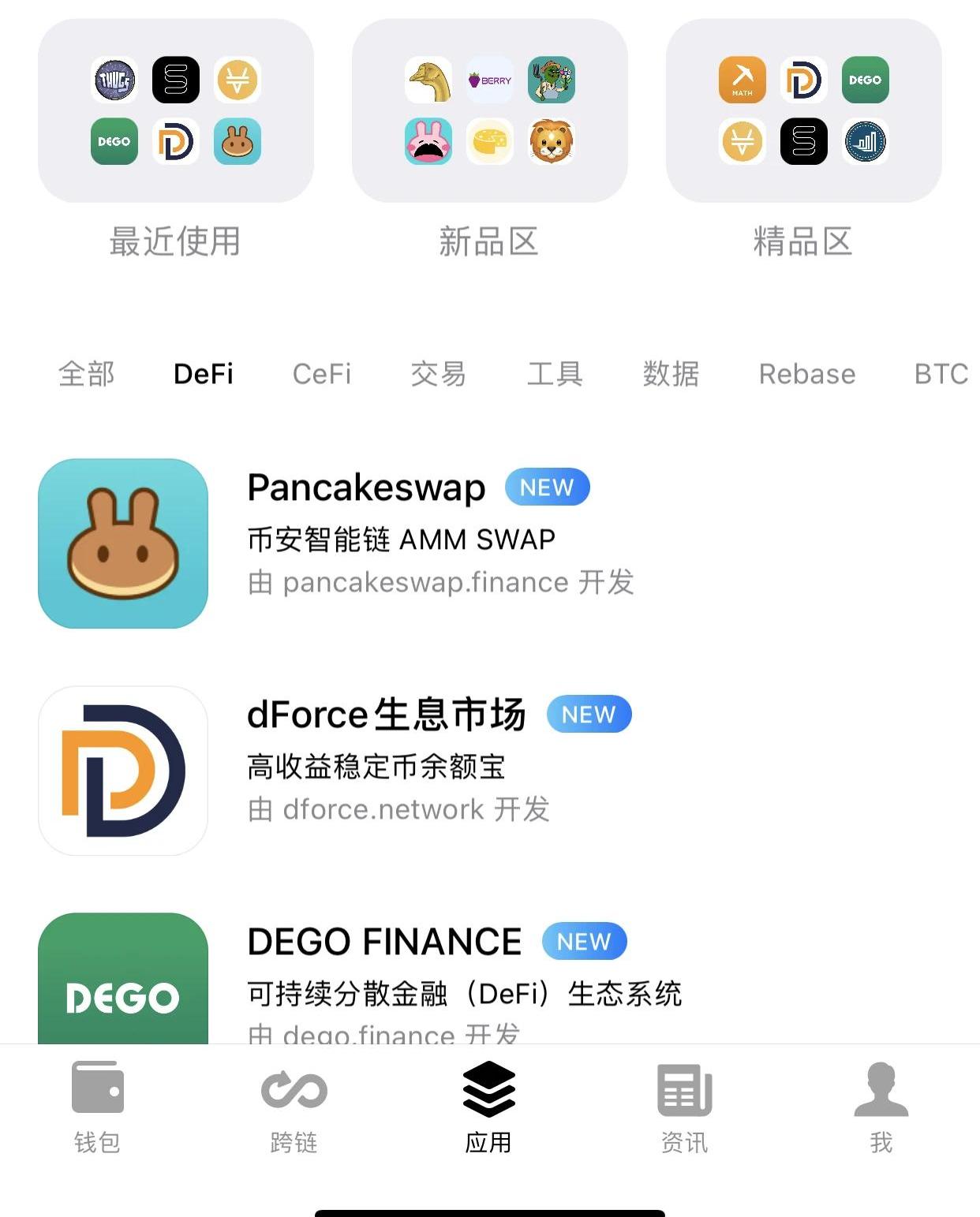 CAKE一騎絕塵的走勢,圖源:coingecko.com相信和我一樣踏空的朋友還有不少,比如只買主流幣不買DeFi的,買DeFi只買以太坊上的……總而言之,問題出在我們對于新公鏈及其生態項目尚缺乏想象力和包容度。我們可能會有這樣一種成見,即新鏈上的項目無非是照著以太坊復制,而一些國內團隊的「復制版」往往還被冠以「土狗項目」的戲謔,所以除了勤于耕田的大戶們,很少有小散真正地使用它。然后,BNB和CAKE等一眾公鏈幣和新DeFi就用漲幅來做了番「市場教育」。也許,我們確實需要用開放的、發展的眼光去看待這些生態了。那么,像BSC這樣的新生態,真的是新機會,還是只是下一個EOS,撲棱幾下就又歸于沉寂了呢?Odaily星球日報認為,BSC確實蘊含機會,值得我們早做關注。從BscScan的統計數據看,在過去一周,BSC新上線的收益農耕項目就有11個,而在過去一段時間,BSC還吸引了CREAM、BAND、DODO等以太坊上不錯的項目。究其原因,BSC快速的開發,配以幣安強大的資金和用戶扶持,對于新的項目甚至不少其他鏈上的成熟項目都頗具吸引力。另外,其兼容以太坊,開發門檻、遷移成本比較低,交易速度快、交易費用低廉,亦適合作為新項目的試驗場。為此,Odaily星球日報在今日正式推出「BSC幣安智能鏈玩轉指南」系列文章,為我們認識新生態提供一個概覽窗口。本篇,我們將聚焦于BSC的錢包、入口和打開方式。如果有朋友還不太了解BSC,可以跳轉看下我們做的這篇簡述:《我從「空氣換大餅」中看到的是,幣安智能鏈何時有這么多資產和玩家了?》BSC的打開方式:擁有BNB、了解BSCBridge