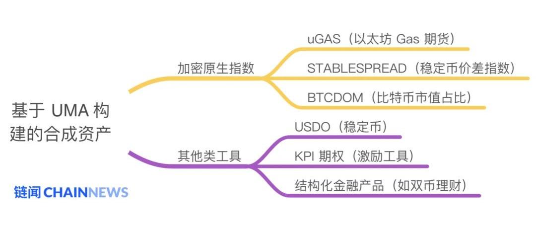 uGAS:可對沖以太坊網絡擁堵而帶來的交易成本上升風險uGAS錨定的是以太坊網絡的Gas價格,Gas價格可以體現出當前以太坊網絡的交易擁堵和交易需求。早期由uLABS直接開發并推進的,后續轉交給DegenerativeFinance負責。以太坊網絡自去年年中被各種DeFi協議「占領」后,Gas就一直處于歷史最高的位置。雖然也有些大幅波動,但整體一直處于上升的趨勢,所以導致了以太坊網絡的很多低價值交易被擠出。所以uGAS可以幫助用戶針對Gas逐漸上升的情況進行對沖,降低未來Gas還會上升的風險。同時也會有不少人認為Gas不會繼續上升,就可以為那些有對沖需求的用戶提供流動性,uGAS可以撮合這兩類人群的需求。鏈接:https://ugas-station.io結構化金融產品:復刻傳統金融的產品結構uLABS最近提出了利用UMA構建去中心化的「結構化產品」的方法,并尋找團隊幫助實現。在傳統金融中,散戶可以通過購買結構化金融產品,被動獲得類似衍生品的風險和收益,其中雙幣產品是最受關注的結構化產品之一。uLABS稱,雙幣產品已經在加密貨幣交易所中普及,通過存入ETH或BTC,并賣出看漲期權限制上漲風險,從而獲得高收益。uLABS表示可以通過UMA的「到期合成代幣合約」復制這樣的功能,但上線主網之前還需要修改EMP合約,所以需要開發和審計,同時也希望社區可以根據該想法給出更多的反饋。鏈接:https://medium.com/uma-project/ulabs-ideas-building-decentralized-structured-products-on-uma-973074098021KPI期權:項目激勵利器很多協議或者DeFi項目都有自己的指標,體現項目的規模或者進展,比如常用的有TVL、獨立用戶數、交易量等等。所以UMA巧妙的結合了項目方可能對KPI存在的需求,所以就設計了期權結構的激勵工具,讓代幣持有者可以幫助項目更快實現某些KPI的指標,如果在給定的到期日之前達到預定目標,就能夠獲得更多獎勵。舉個簡單的例子,UMA可以設計一種針對TVL指標的「KPI期權」,以激勵UMA協議的持倉量增長。UMA可以將這類KPI期權空投給鯨魚用戶或者DeFi核心玩家,只要在到期日時,如果TVL可以滿足該期權設定的目標,持有KPI期權的用戶就可以解鎖換得UMA代幣。鏈接:https://medium.com/uma-project/uma-kpi-options-and-airdrop-bae86be16ce4比特幣市值占比:可交易的宏觀指標比特幣市值占比一直都是業內宏觀分析中最常被提及的指標之一,還有很多專業分析師以此指標建立各種投資策略。如果這類策略的真的有效,那用戶就可以將自己本身的代幣投資策略,再加上比特幣的市值占比作為其中的一個重要交易指標,對沖因該指標發生變化而產生的基本面變化所引起的風險。初創團隊DominationFinance是該指標的研發團隊,他們不僅開發了追蹤比特幣市值占比的代幣BTCDOM,還有對應的山寨幣市值占比ALTDOM,后續將逐步推出一系列相關產品。鏈接:https://www.domination.finance穩定幣資產:任何資產都能鑄造穩定幣區塊鏈上的穩定幣一般是基于特定的加密資產抵押生成,或者通過鏈下實體資產抵押生成。而OpenDAO希望將這件事的范圍再次擴大,可以將任何加密資產、股票或鏈下資產作為鏈上穩定幣的抵押物。所以OpenDAO需要UMA和RenProtocol作為實現該功能的最基礎組件。UMA實現合成資產業務,RenProtocol實現資產跨鏈業務。據官網顯示,該項目第一階段計劃將鏈上的流動性資產作為抵押生成美元穩定幣USDO,第二階段計劃將鏈下的流動性資產作為抵押物,第三第四階段計劃將鏈下的房產、股權等作為抵押物。鏈接:https://opendao.io穩定幣價差:可提升跨鏈資產穩定性一個名為Zelda.Cash的項目通過UMA協議構建基于穩定幣價差的合成資產,允許用戶創建STABLESPREAD頭寸。STABLESPREAD是一種合成資產,可用于追蹤一籃子ETH上的穩定幣和其他區塊鏈上穩定幣之間的價差。根據官方文檔顯示,如果用戶認為非以太坊的穩定幣的價格優于以太坊的穩定幣,就可以通過購買STABLESPREAD獲利,反之則可以拋售。該項目由一個名為YouMyChicFilA的匿名團隊開發,他們旗下還有一個名為MarioCash的項目,利用UMA協議將renBTC合成為BCH。鏈接:https://youmychicfila.com