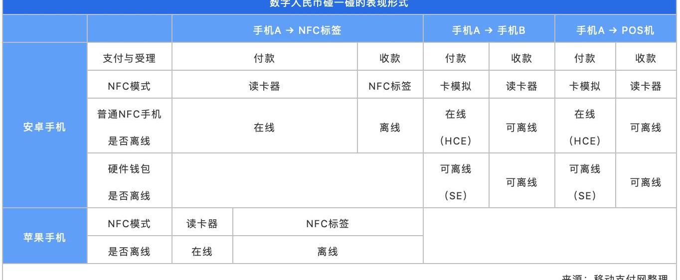 XRP/HKD-5.57%編者按:本文來自數字法幣研究社,作者:佘云峰,星球日報經授權發布。近日,北京數字人民幣試點活動已經圓滿結束,此次活動中除了中簽用戶使用手機App支付之外,還亮相了包括可視卡、手表手環、充電寶、老年拐杖、老年警報器在內的各種類型的數字人民幣硬件錢包。而這些多種形態的硬件錢包本質上可以“不依賴手機”碰一碰支付數字人民幣,兩個硬件錢包之間的碰一碰支付也就是我們常說的雙離線。那么到底什么是數字人民幣的“碰一碰”呢?基于手機的“碰一碰”到底有哪些形式?以下內容節選自移動支付網《數字人民幣發展研究報告2020》。“碰一碰”是數字人民幣的一項收付款功能,其基于NFC功能,實現終端與終端之間、終端與標簽之間的信息交互,從而達到收付款的目的。