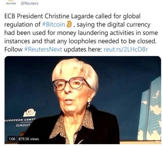 XRP/HKD-5.3%根據路透社的報道,在最近的一次線上會議上,歐洲央行行長拉加德表達了她對比特幣的觀點。本文對她的這些觀點進行一些解析并對全球金融監管機構在比特幣和加密數字貨幣的監管政策方面作出一些預測。