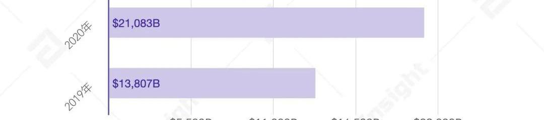 2020年比特幣交易量占現貨交易量比例,來源:TokenInsight比特幣現貨市場主導性的減弱一方面可歸因于DeFi的火熱,多個DeFi資產在2020年下半年,尤其是三季度實現超額收益回報,吸引資本的流入;另一方面,比特幣價格四季度的暴漲雖使得其現貨市場主導性稍有提升,但該因素對合約市場的影響強于現貨市場,比特幣現貨市場在一定程度上受到合約市場的沖擊。3.2中心化交易所成交量動態3.2.1整體交易表現“2020全年中心化現貨交易所成交量報20萬億美元,手續費收入估算達$18億
