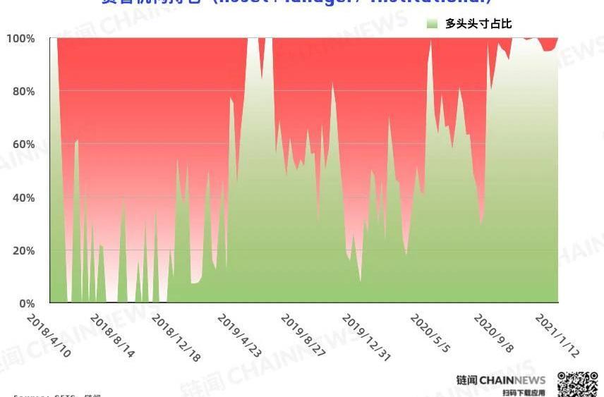 XRP/HKD-0.02%編者按:本文來自鏈聞ChainNews,星球日報經授權發布。1月16日,CFTC公布了最新一期CME比特幣期貨周報,最新統計周期內BTC一度實現了歷史性的對于40000整數關口的突破,不過在前半統計周期走出了一波加速沖高的表現之后,后半統計周期內出現了大幅回調,并在統計周期末段完成了對于這一小輪漲幅的全數回吐,而這也是經歷了近兩個月的單邊上漲過后,終于出現了一個幾乎沒有取得任何實際漲幅的統計周期,市場是否會將此視作拐點出現的信號呢?上一統計周期內出現的高度一致的追漲態勢能否延續?該統計周期內各類賬戶的調倉表現非常令人期待。總持倉數量在最新一期數據中自11296張進一步上升至12039張,上一統計周期內的反彈勢頭得以延續,短期市場熱度進一步上升,統計周期內出現的大幅回調并沒有引發恐慌性的減倉狀況。