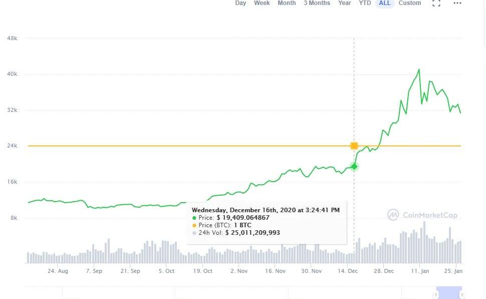 小蜜蜂比較了一下2017年BTC的漲幅:以開盤價為準,2017年1月1日,BTC開盤價963.66美元,2017年12月31日,BTC開盤價12,897.70,咱們都不算最高值,就計算這個1月1日到12月31日,BTC的價格上漲為13.384倍。如果考慮到比特幣的增發,來比較比特幣的市值,我們同樣不比最高值,就比2017年1月1日和2017年12月31日。2017年1月1日,BTC市值16,050,407,461美元,2017年12月31日BTC市值237,465,823,980。按市值來計算,2017年的BTC上漲更多,上漲為14.795倍。再來看2020年的BTC,2020年1月1日,BTC開盤價$7,194.89,市值$130,580,829,150。2020年12月31日,BTC開盤價$28,841.57,市值$539,051,138,108。2020年12月31日,開盤價上漲為2020年1月1日的4倍,市值為4.13倍。這么一對比就會發現,2020年BTC的瘋狂程度根本和2017年不能比。2020vs2016