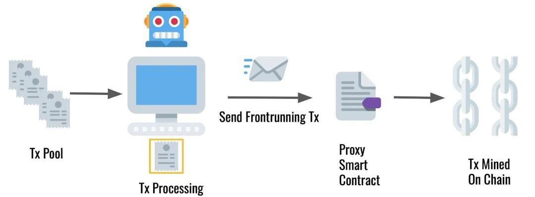 這個實驗的一個重要部分是了解Frontrunning者的工作原理。然而,如果有人建立了一個賺錢的機器,它可能不會在Github上分享。因此,我們只能觀察和按工程犯罪者的行為逆向分析。構建一個通用的Frontrunning者通常需要兩個部分。第一個組件是一個以太坊賬戶,無論是否有智能錢包代理,修改后的交易都可以發送到該賬戶。第二個是“后端”,也就是操作的大腦,它大多發生在鏈下。操作符使用一些技術來檢查池中的每個事務,解析它,替換它的參數,并確定它是否有任何利潤。