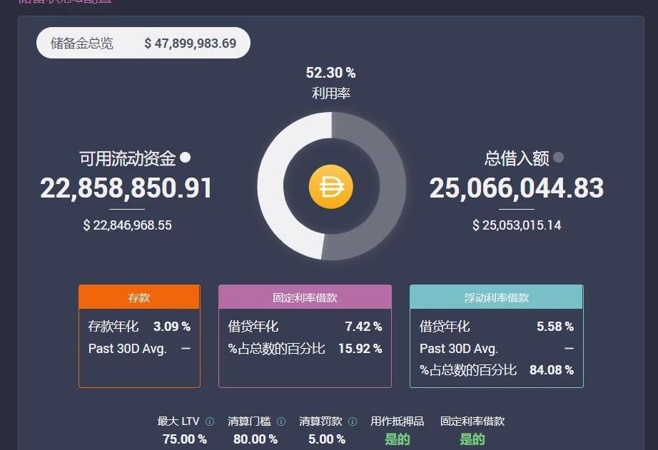 Aave是知名借貸平臺,DeFi龍頭產品之一,創新性較強,具有很高的知名度和比較大的用戶群體。Aave在浮動利率借貸之外,還提供了固定利率借貸服務,如下圖所示: