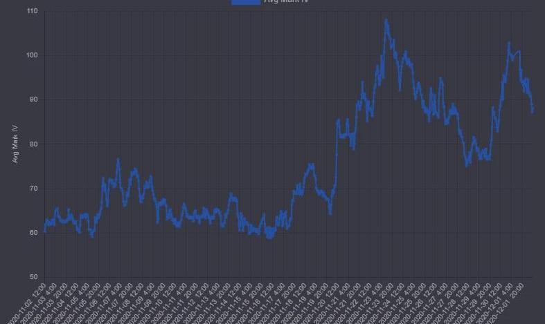 ETH歷史波動率10d108%30d86%90d82%1Y103%以太坊今日期權持倉量7.71億美元,成交量0.64億美元,以太坊持倉量平穩。各標準化期限IV:今日:1m95%,3m67%,6m86%12/1:1m76%,3m82%,6m80%