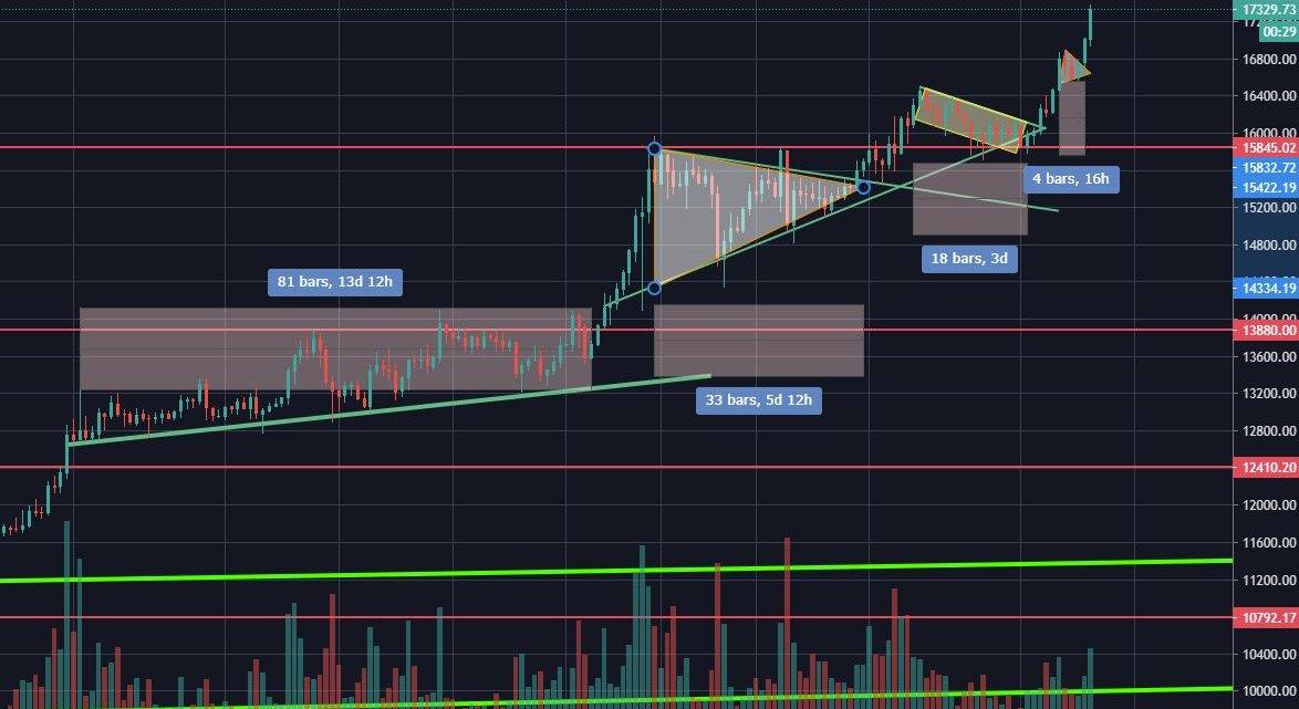 XRP/HKD-4.66%編者按:本文來自Cointelegraph中文,作者:JOSEPHYOUNG,Odaily星球日報經授權轉載。比特幣的價格正在飆升至1.8萬美元,興奮的交易員認為這一頂級數字資產將可能超過2017年的歷史高點19763美元。除非你是做空者,否則再創歷史新高是很棒的。但理想情況下,要使可持續的上漲保持步伐,階梯式上漲趨勢比突然上漲更為有利。最近幾周,比特幣持續飆升,沒有長時間的盤整或大幅下跌。