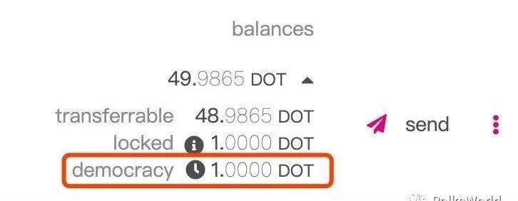 如果有的話,點擊“send”右邊的三個小點點,選擇"Clearexpireddemocracylocks"就可以解鎖因投票鎖定的DOT了。正文部分就到此結束了。其實我在寫教程中的過程中自己也覺得,這套投票的規則其實是比較復雜的,尤其是對首次使用來說,可能不是很友好,可能大家也會有類似的感覺。不過Polkassembly的誕生本身就是一次進步,我們相信未來Parity和社區會不斷開發更多好用的工具來降低參與波卡治理的門檻,我們PolkaWorld也會繼續科普治理相關的知識,讓更多人能參與到波卡的民主治理進程中來。歡迎學習Substrate:https://substrate.dev/關注Substrate進展:https://github.com/paritytech/substrate關注Polkadot進展:https://github.com/paritytech/polkadot