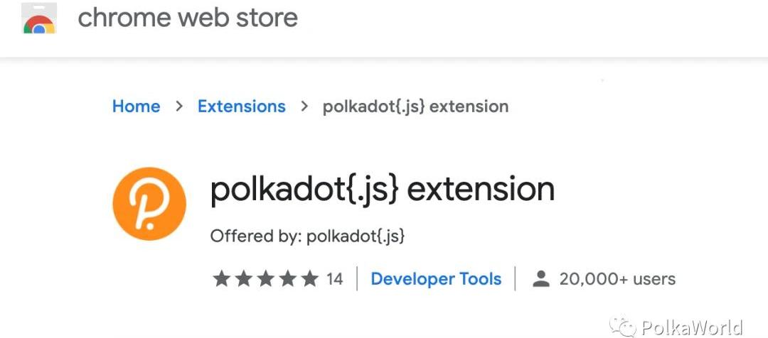 1.在下面的地址下載插件:https://chrome.google.com/webstore/detail/polkadot%7Bjs%7D-extension/mopnmbcafieddcagagdcbnhejhlodfdd?hl=en