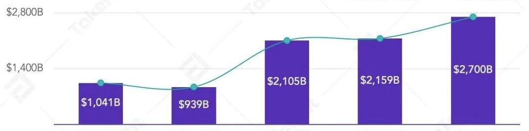 3.1市場成交量“本季度衍生品市場實現突破,總成交量增長至$2.7萬億,并首次出現超越現貨的單日成交量本季度TokenInsight共獲取數字資產衍生品行業42家交易所相關數據,并沿用上季度對于衍生品交易所的分類,進行詳細研究。2020年第三季度,數字資產衍生品市場成交量報$2.7萬億,較上季度環比增長25.1%,較19年第三季度同比增長159.4%。