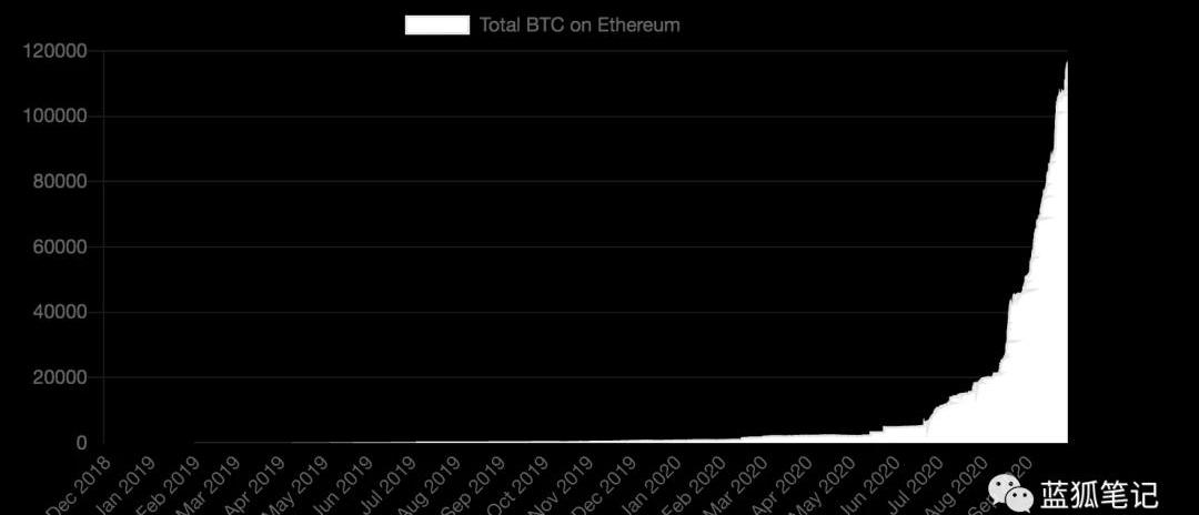 有意思的是,目前在以太坊上的BTC接近20億美元,鎖定量接近15萬個,而且隨著以太坊DeFi的發展,趨勢還在繼續。