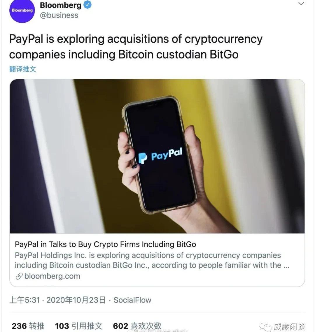 這個策略我覺得還是可以作為參考的,當然,不作為我的投資建議。并且請注意全文中的最后一句:本策略適合長期投資者。最后,再敘一個舊聞。最近PayPal大力支持比特幣的消息不僅成了比特幣今年最大的新聞之一,其實也是PayPal自身今年最大的新聞之一: