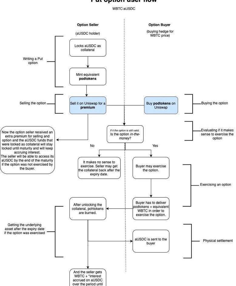不過,ShellProtocol表示其終極目標是創造一種所有人都能使用的互聯網貨幣系統,穩定幣流動性資金池只是第一步。項目官網Pods:去中心化美式期權協議Pods是一種去中心化、非托管的美式期權協議,用戶可以買賣看跌期權或看漲期權。由于Pods是美式期權,且實物結算,因此Pods的期權沒有固定的行權時間限定,大幅降低了預言機以及清算系統可能造成的潛在風險。今年4月鏈聞認真瀏覽了一百多個參與HackMoney的黑客松項目,認真摘選并介紹了其中一些頗具啟發性的項目和應用,其中就包括Pods,當時Pods展示了用戶可使用Aave的計息代幣aToken作為抵押,創建和出售wBTC的美式看跌期權。