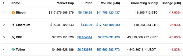 隨著最近一周主流幣的大幅下跌,USDT目前已經躋身第4大幣種,目前總發行量達到46.4億多枚,總市值達到46.4億美元。24小時交易量達到530億美元,比比特幣24小時交易量還高26%。
