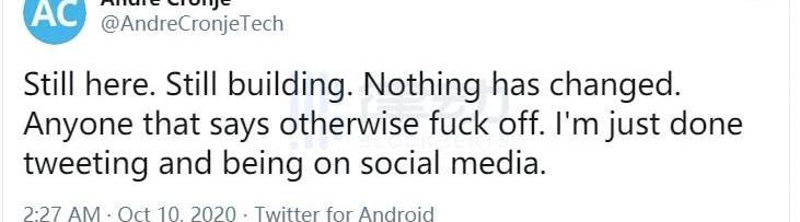 自從參與開發的DeFi項目Eminence.finance遭黑客入侵后,他本人收到了許多威脅信,這幾天,關于AC退圈的消息開始流傳,社區也逐漸感受到他的缺席,「隱瞞這一信息已不再符合公眾利益。」Coindesk在報道中表示。在AC回應之前,種種跡象也表明,AC似乎下定決心離開。今年8月8日,海外加密貨幣媒體Decrypt也曾報道援引AC本人的話,表示將離開DeFi行業,但很快就對此回應,報道有些夸大其辭,自己當前遇到的這些問題都不會構成阻礙,其也將繼續留在DeFi領域進行建設,除非沒有任何東西可以開發了。但這段時間,AC再一次離開的消息已經發酵好幾天了,由于都是第三方或者社區懷疑,AC并未對此做出回應。直到Coindesk的采訪消息出現。在AC消失的這段時間,沒有人直到他經歷了怎樣的心路歷程,社區流傳的基本上都是他要離開的消息。比如有人證實了他收到的威脅十分嚴重,還有人表示他經歷了一場可怕的事故。對于愈演愈烈的傳言,還有人在號召社區挽回AC。一個昵稱為「Niffler」的用戶在社區發起一個名為「給Andre的情書」的帖子,目前已經有眾多帖子與留言。