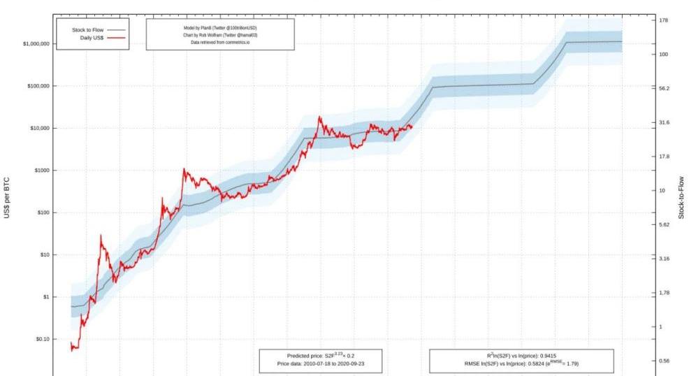 比特幣S2F跨資產模型來源:https://100trillionusd.github.ioSF用對數值是為了更好地顯示ln和ln之間良好的線性關系,兩個因素之R平方達到了驚人的0.9967,說明S2F模型在衡量資產價值與資產稀缺性層面存在著顯著的強正相關關系,兩者之間的關系也將是數學關系并非純粹巧合或偶然,市場價值的主導驅動因素是稀缺。根據這個模型,比特幣的市值價值將在未來四年間趨近于:市場價值=exp*56^4.1167=$5.5T這意味著每個比特幣的市場價格將超越10萬美元,并有望達到28.8萬美元的歷史性高位。