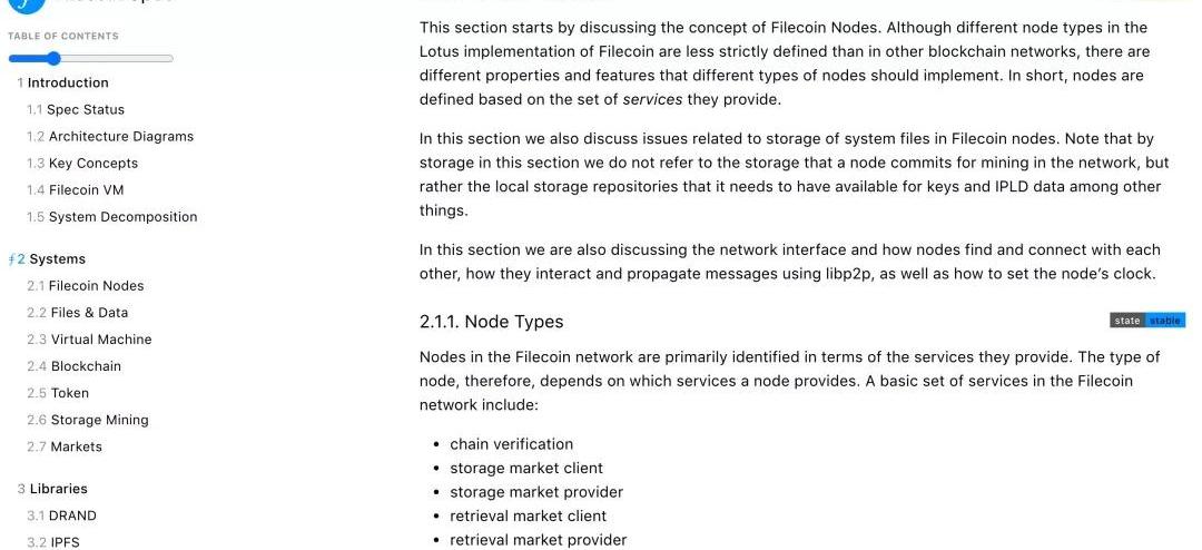 新的Filecoin規范貢獻工作流程現在,更新規范內容變得更加簡單和有趣,涉及在文件中進行“單觸”編輯。后端機制負責其余的工作,并自動更新目錄和文檔結構!更新后的站點最值得注意的功能分為以下幾類:工具和語法使用npm和Go模塊無縫控制依賴關系通過katex提供無縫數學支持新的markdownlinter帶有一些自定義lint規則,以確保內容降價的一致性,內容降價在CI中作為測試運行。圖和代碼塊Mermaid和Dot處理管道與Hugo服務器很好地集成在一起,用于開發和內容編輯。可以使用符號短代碼從規范中引用代碼,以便即使修改了代碼庫本身,也可以引用正確的代碼塊并將其從相應的存儲庫中提取。文件層級從ToC中提取節編號,以便在重組節后自動更新ToC。無需編輯單獨的文件即可保持同步。節深層鏈接集成。現在,單頁呈現穩定并且在ToC中反映了部分結構。除了這些背景變化之外,該網站也進行了改版!