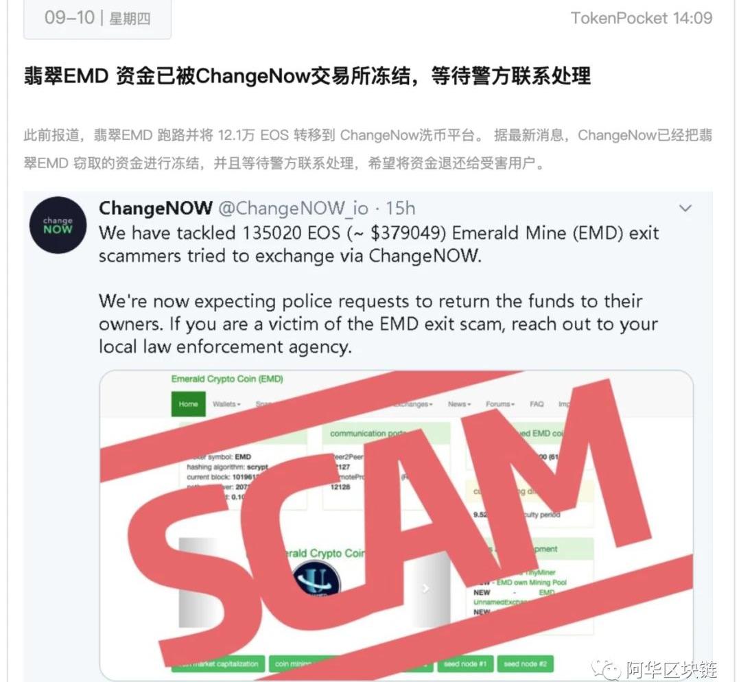 而且這次ChangeNOW平臺也挺配合的,出手也快,已把翡翠轉移到ChangeNow平臺的12.1萬EOS進行了凍結。