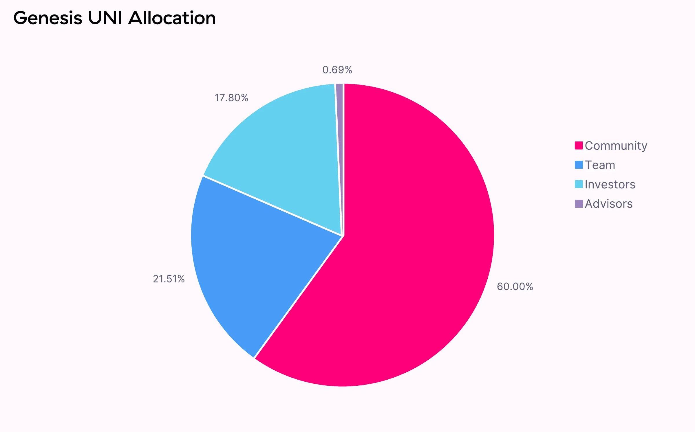 XRP/HKD-2.91%9月17日早間8點,Uniswap推特發布消息稱,其協議治理代幣UNI已在以太坊主網上發布,并將于UTC9月18日上午12:00開啟初始流動性挖礦。UNI創始數量為10億個,60%分配給Uniswap社區成員,剩余分配給團隊、投資人和顧問。分配給社區成員的部分,四分之一(占總供應的15%,共1.5億枚)已經分配給過去的用戶,剩余則通過流動性挖礦釋放。消息一出,Uniswap社區用戶沸騰了,紛紛申領、提幣、交易,以太坊Gas費一度暴漲至770Gwei。中心化交易所也迅速跟進,10:30開始,OKEx、火幣和幣安輪番上線UNI。一時間,在DeFi行情尾聲出現的第二大DEX平臺幣,吸引了所有人的目光。據官方公布消息,UNI的具體分配規則如下: