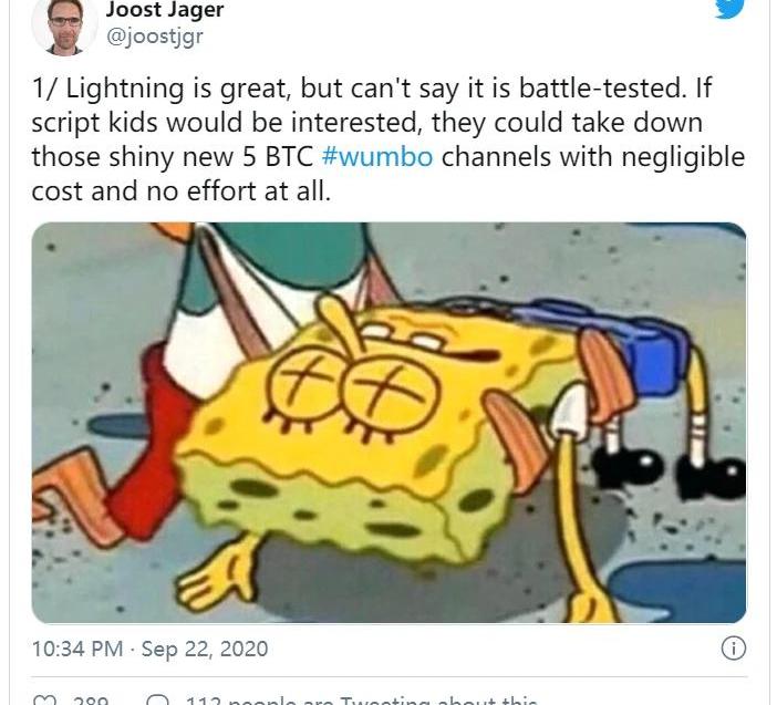 Jager表示,這類攻擊可以在wumbo通道上進行。在交易方相互同意的前提下,wumbo通道可以在閃電網絡上實現更大額的交易。wumbo通道取消了常規閃電通道所能持有的比特幣數量的限制——按當前的價格計算,該通道的比特幣價值約為1760美元。其還取消了個人支付450美元的上限。Jager說wumbo通道可能被利用,因為該通道在任何時候都不能持有超過483哈希和時間鎖合約,不管容量有多大。因此,一個作惡者向自己發送483筆小額支付,并控制HTLCs,足以使一個通道癱瘓長達兩周。這位開發者舉例證明了可以通過使用最大線路長度來增加loop和更多的合約來實現這一攻擊,只需少量的投入,在這個例子中就是580萬聰。“如果幸運的話,他們只需要支付54筆支付就可以完成攻擊。一個小小的通道就能讓兩位數的比特幣癱瘓。”他補充說,他已經為閃電節點項目啟動了一個名為CircuitBreaker的新防火墻來解決這個問題。當被問及這種“惡意攻擊”是否是閃電網絡目前最嚴重且未解決的攻擊向量時,他補充說:“這取決于你如何定義嚴重。還有其他的攻擊類型會讓你損失資金,這看起來更糟。但這個問題是最大的問題之一,因為我們不知道如何解決。”使用wumbo通道,用戶可以發出信號,表示他們想要發送超出常規限制的比特幣,并找到一個愿意接收這筆支付的節點。常規的閃電網絡用戶發送微支付將不會受到影響,但對于商戶和企業支付來說,這是一個更好的選擇。越來越多的人開始接受wumbo通道,Bitfinex也在最近宣布支持這個通道。
