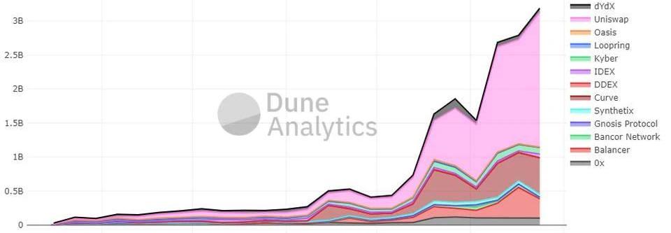 團隊能夠在高度相關時添加新功能的另一個出色范例是1inch。Uniswapv2剛上線幾個小時他們就將其加入其服務中,在首次去中心化交易發行IDO狂潮開始時對訂單進行了顯示,在Gas價格飛漲時實施了可以節省gas費的Chi代幣。