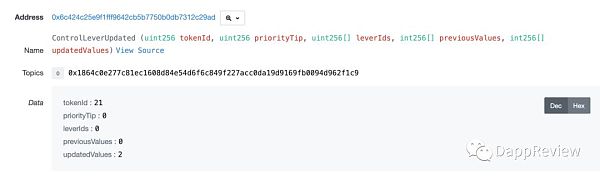 在對應的交易Event log里,可以看到tokenid為21的Layer(即上述中Eternal Anger)更新了leverIds,從此前的0更新成2。