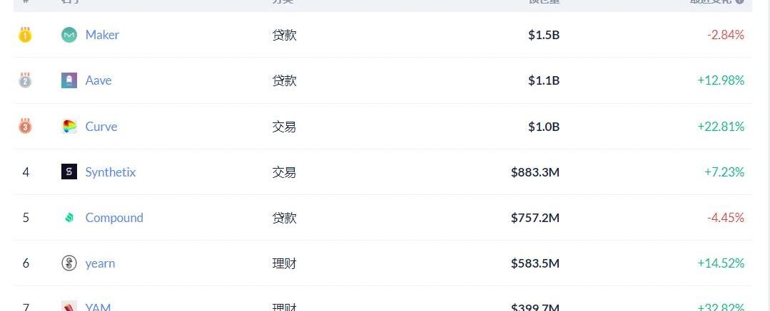 鎖倉量快速攀升,得益于挖礦的火爆,再直接點是得益于CRV流動性挖礦的推出。DeFi好不好,光喊口號是不行的,還得大家用資金投票。鏈上鎖定的總資產,就是一個很好的用腳投票的最真實驗證。在CRV流動性挖礦的刺激下,ETH上的DeFi有三個項目的鎖倉量突破10億美元,流動性挖礦的刺激作用太強了。接下來期待Aave的流動性挖礦,是否會帶來不一樣的狂暴。