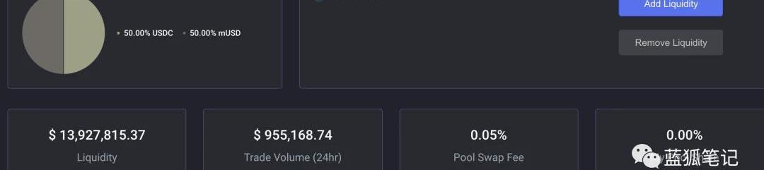 除了Curve上的流動性池,Balancer上也有不少流動性池:*Balancer上的mUSD-USDC池為mUSD提供流動性,可以賺取MTA和BAL。