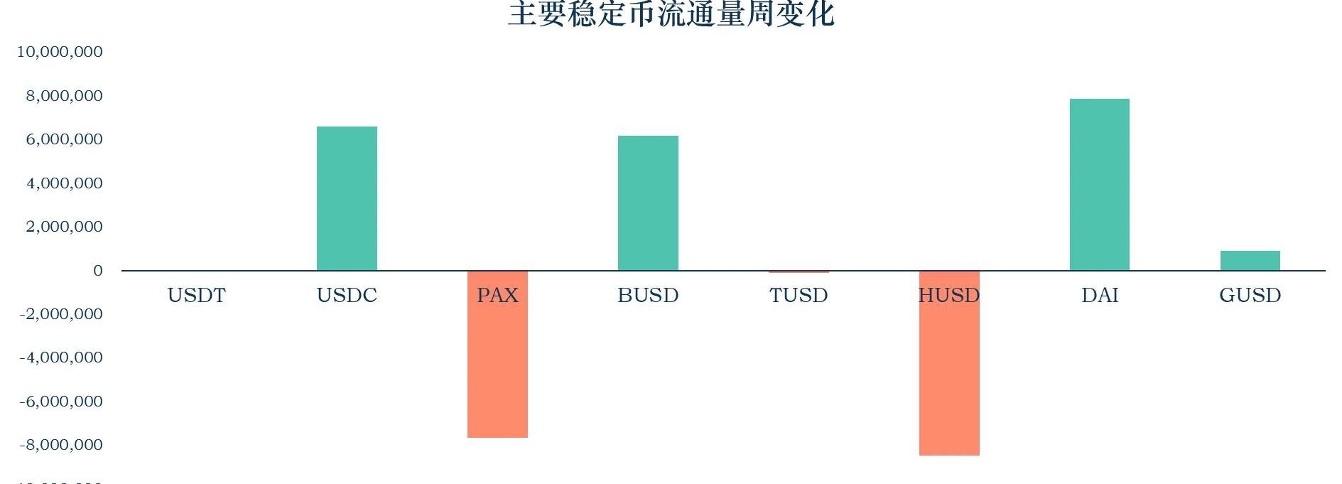 我們首先回顧在過去的一周中,各穩定幣基本信息的變化。市場流通量