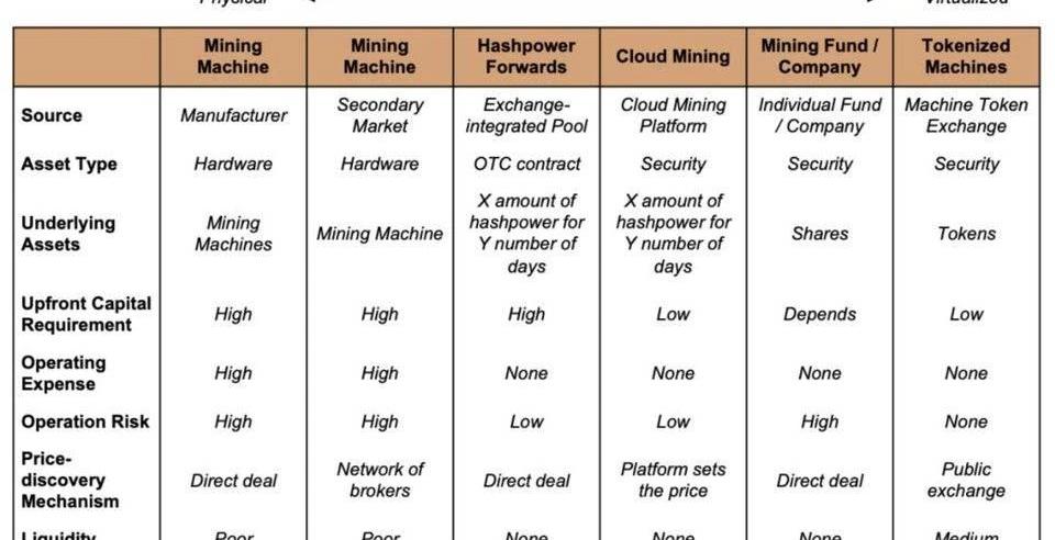 我們將所有產生算力以換取加密貨幣的資產,以及通過模擬挖礦回報率的合成的合同/金融工具,定義為算力資產。盡管歷史很短,但是投資這一資產類別已越來越熱門。為了滿足這一需求,涌現出許多特殊目的實體、垂直化的挖礦機構挖礦基礎設施/服務提供商,還有與挖礦有關的金融合同。在本章中,我們將描述不同類型的算力資產的關鍵特征、它們作為金融工具的本質,以及每個市場載體目前所面臨的挑戰。礦機市場