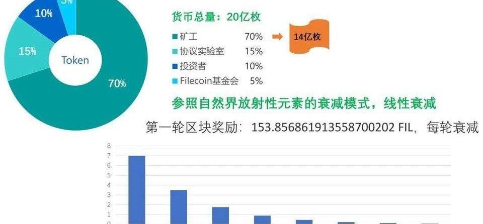 1T有效算力隨著全網算力增長占比的降低情況而除了這兩個原因之外,Filecoin的區塊獎勵發放采用了通縮經濟模型,礦工發放的14億枚幣仿照元素半衰期設計,以每一輪為單位持續衰減,也就是說每一輪區塊獎勵都比上一輪拿到的FIL獎勵要少。