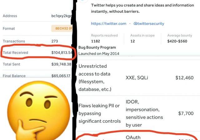 Twitter在HackerOne漏洞賞金平臺上面有設置漏洞賞金計劃(https://hackerone.com/twitter).有人指出了Twitter對于Accounttakeover(賬號盜取)類型的漏洞,只給予7700美金的獎勵,而這次黑客利用此類漏洞,已經盜取了10萬美金以上的金額。這樣的對比,引人深思。
