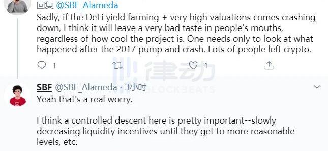 其實DeFi現在面臨這種選擇。到目前為止,DeFi行業數據增長幾乎完全是炒作(吹起來的)和營銷泡沫。但是在某些方面,蘋果公司也是這樣起來的,更明顯的一個例子是Juicero。需要思考的是,當炒作消失時會發生什么?我們給后世留下了一個什么行業?DeFi的火熱「泡沫」可能會破裂,留下一個令人尷尬的混亂局面。但是也可能標志著真正的去中心化金融的開始。為了到達這個最終目標,我們必須制造出優質的產品,并在迷霧漸漸消失時留下一個可以引以為傲的市場。不過這并不是說DeFi項目都不好,需要明確的是,一些項目正在擴大這個市場。Compound是一款干凈、功能齊全的產品,還附帶著精美的用例。Balancer以一種有趣的方式擴展了Uniswap。在市場營銷方面表現出色,并不意味著這個項目沒有實質意義。。最后SBF建議,當前的情況下應該控制一下對于DeFi流動性挖礦的熱情,這是非常重要的,緩慢降低流動性激勵措施,直到達到合理水平,等等。