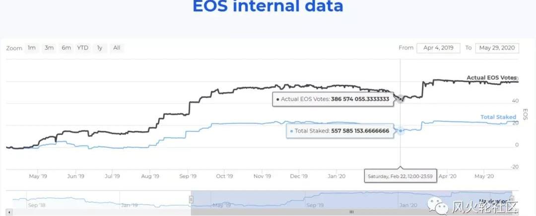 甚至也有比較勇猛的幣友走出國門,直接在BB的推文下方罵的。3.DApp鏈上現狀從鏈上近24小時合約調取量來看,鏈上做最多的消耗還是在CPU挖礦項目上(如上圖紅框的兩個),其次是兩家去中心化交易所newdex和鯨交所。從用戶數來說,最活躍的是鯨交所,其次Newdex,還有兩個活得很久的頭部DApp項目,eos三國和bg,數據也一直保持得不錯。那從這樣的鏈上狀況來說呢,就是沒有什么新的起色,在應用上到是也一直出新游戲,還有defi,不過都及其小眾,沒什么活躍度,形不成規模。至于B1的voice和新項目,也不是一時半會能出頭的,在很多人眼中也是和騙局無異。以上就是兩周年大體的一個情況,要說在這些絕望之中找尋點支撐呢,就是半月前曾有個消息說巨鯨在囤積,100萬-1000萬持倉地址數量增加了22%。下圖是eosauthority上的一份近一年全網抵押量及投票量的變化: