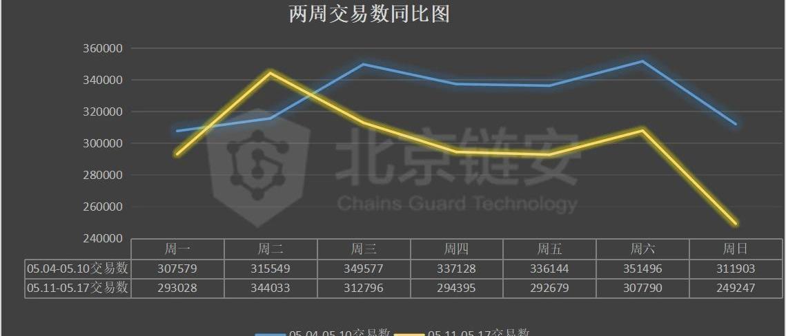 交易數:05.04-05.10:230937605.11-05.17:2093968較之前一周下降:9.33%詳細數據圖如下: