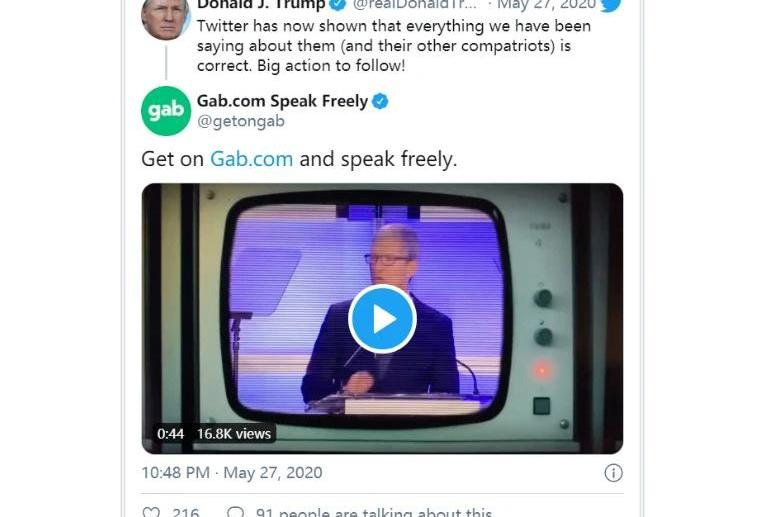 與此同時,由于近期YouTube刪除了批評某些政府的評論,以及谷歌刪除了數百萬條TikTok(抖音短視頻國際版)的負面評論,有關大型科技公司審查的討論最近變得更加激烈。此前,TikTok的評分跌至歷史低點。而隨著去中心化平臺越來越受歡迎之際,以太坊創始人VitalikButerin提出了“替代方案”。比如,Gab是一個聲稱“言論自由的社交網絡”,它想要與Twitter競爭。最近,該平臺將其網絡進行了去中心化,用戶數量也有所增長。但該平臺因允許任何人(甚至包括白人民族主義者和另類右翼人士)自由發表言論而受到批評。本周三,Gab也對此事回應了。在川普表示他將對Twitter采取行動后,Gab告訴川普“前來Gab暢所欲言”。