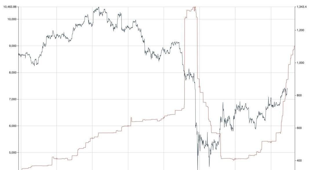繼針對Deribit交易所比特幣6月26日到期期權合約自去年底上市以來、截至本月10日的開倉量含時演化分析結果發布之后,同伴客數據分析團隊進一步單獨截取了行權價6000美金的看跌期權的開倉量的時間演化曲線,同比特幣價格對比后展示如下: