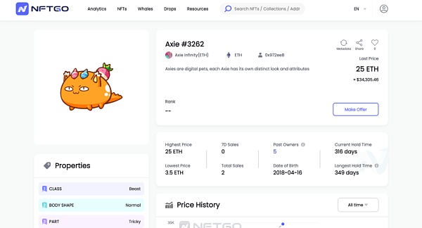 如果你查看一個Axie,你就會發現與前兩者不同的是,它上面沒有不可變的元數據標簽。這就意味著NFT容易受到中心化風險的影響,并且不能做到抗審查。