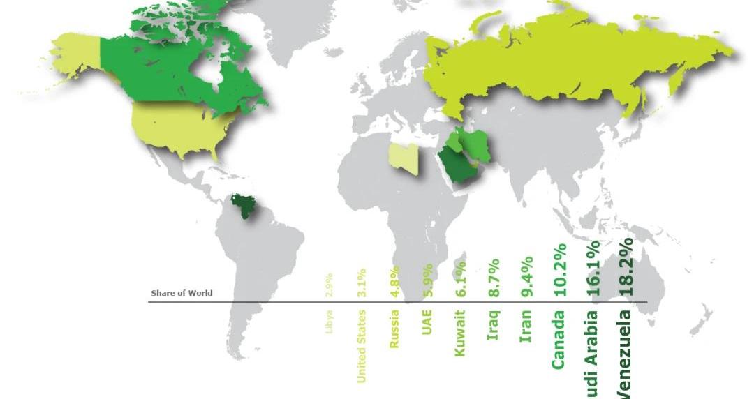 Theworldtop10reservesholders,WorldOilReview2019世界石油儲量最大的國家是委內瑞拉,但由于當地石油主要是重油,開采困難,且硫含量高,煉化也非常困難,需要兌入輕油才能煉化。再加上美國對它實行輕油禁令,委內瑞納的石油行業發展基本陷入停滯,甚至連國內的汽油需求都無法滿足。中國作為委內瑞納最大的石油合作方之一,主要是由于沙特和利比亞的石油對中國的供應有限制,而進口伊朗的石油又會受到美國的制裁,且2009年之前和俄羅斯的能源合作協議還沒確定。為了保證自身的能源供應,中國才會大力投資委內瑞納的石油產業。第二是沙特阿拉伯,石油儲量高品質好,其石油行業主要由美國控制。加拿大的石油儲量處于第三。但由于主要產油區位于高寒帶,開采困難。另外,加拿大油田主要產出的主要是含硫量較高的油砂,需要通過繁雜的脫硫處理才能使用。導致其開采成本是120美元一桶。其他石油儲量比較大的基本都在中東,比如伊朗,伊拉克,科威特,以及阿拉伯聯合酋長國。這些國家的石油產業受地緣的影響都比較大。排名第八的是俄羅斯,但由于凍土層的影響,導致開采設備都需要特制,且自身無法生產,需要從美國進口才能正常開采。所以,俄羅斯的石油產量經常受美國影響。利比亞雖然儲量排在第九,但它擁有全世界最好的石油產區,開采出來的石油基本可以直接使用。但由于地緣,大國博弈等原因,利比亞現在陷入戰爭的泥沼。懷壁之罪,莫過于是。2.石油生產