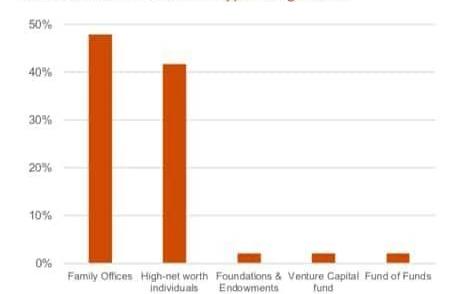 最常見的投資者類型是家族理財辦公室(48%)和高凈值個人(42%)。受訪者中無人提及養老金基金,只有少數基金會或捐贈基金是投資者,此外相比之下,風投基金(VC)基金和基金中的基金(FoFs)占比很小。