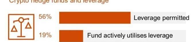 2019年的調查數據就支撐了這一觀點,因為近一半的基金做空加密資產(48%),且半數以上(56%)的基金積極使用衍生品。在期權和期貨市場上,約有三分之一的基金使用期貨和期權。受監管的期貨產品的存在,應有助于在未來幾年增加此類工具的使用。此外,在杠桿的使用上,可以觀察到不同發展趨勢。在2019年的報告中,只有36%的加密對沖基金被允許使用杠桿,而今年這一數字上升到了56%,盡管只有19%的基金在積極使用它。報告認為,未來更多加密對沖基金將被允許使用杠桿。