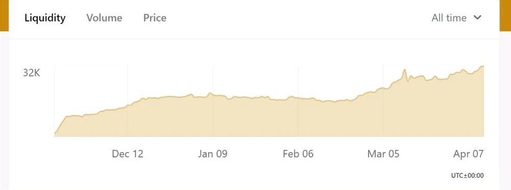 該池的規模大約在三個月翻倍,而交易額則幾乎一個月翻一倍!在去年11月至今年2月這一時間段。此后,3月的交易額大爆發。下圖可以看到合并的數據: