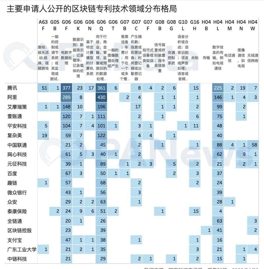 其中值得格外注意的是,中國人民銀行數字貨幣研究所2019年以來僅公開了3個區塊鏈相關的專利,歷史上也僅公開了5個區塊鏈相關的專利,只占76個公開專利的6.58%。2019年至今公開的2個專利分別涉及H04L和G06F領域。這2個專利的名稱分別是《一種基于區塊鏈的文件流處理的方法、裝置及系統》和《一種基于區塊鏈的文件授權訪問方法、裝置及系統》。今年1月,這兩個專利已經提交實質審查,通過后才能被正式授權。人民銀行數字貨幣研究所的區塊鏈相關專利并不涉及數量最多的G06Q領域,而這恰是其他銀行公開專利數量最多的領域,其中是否存在可能的合作存在想象空間但并不可知。縱觀2019年以來雖然各行各業都在積累區塊鏈專利,但專利數量是否越多越好,業內存在不同的聲音。藍港互動董事長王峰曾發微博表示,“公鏈的開源代碼方面,中國的代碼貢獻量僅是美國的三分之一,中國自主技術平臺開發者超過80%的區塊鏈技術平臺是使用國外開源技術,如Fabric、以太坊等。希望不要僅僅拿所謂專利申請數量欺騙地方政府。”而公開區塊鏈專利數量僅次于騰訊和阿里的艾摩瑞策CTO吉建勛曾表示,“現在行業還在早期階段,有很多場景是需要技術突破的,大多數企業申請專利是希望通過專利保護技術。這種保護不是以盈利為前提的,軟件公司想通過專利盈利是比較難的,一般都是通信公司或者硬件公司通過專利推進國際標準而盈利比較多。”數據說明:本次統計口徑為國家知識產權局專利局專利檢索及分析數據庫中收錄的2019年1月1日至2020年4月9日已公開的文本中包含“區塊鏈”的專利,申請號去重后共計獲得10400件專利。本次統計的專利小類為多項統計,即若一個申請號下包含兩個及以上的小類時,分別計入一個小類統計。