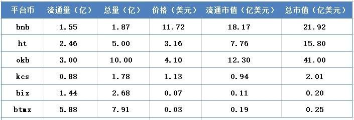 來源:tradingview其中綠色線為BTC價格走勢,藍色線為BNB價格走勢,橘色線為HT價格走勢。本周比特幣以向上反彈的行情為主,主流幣平臺幣反彈幅度略大于BTC,上方壓力較大,向上空間有限。平臺幣市值概覽