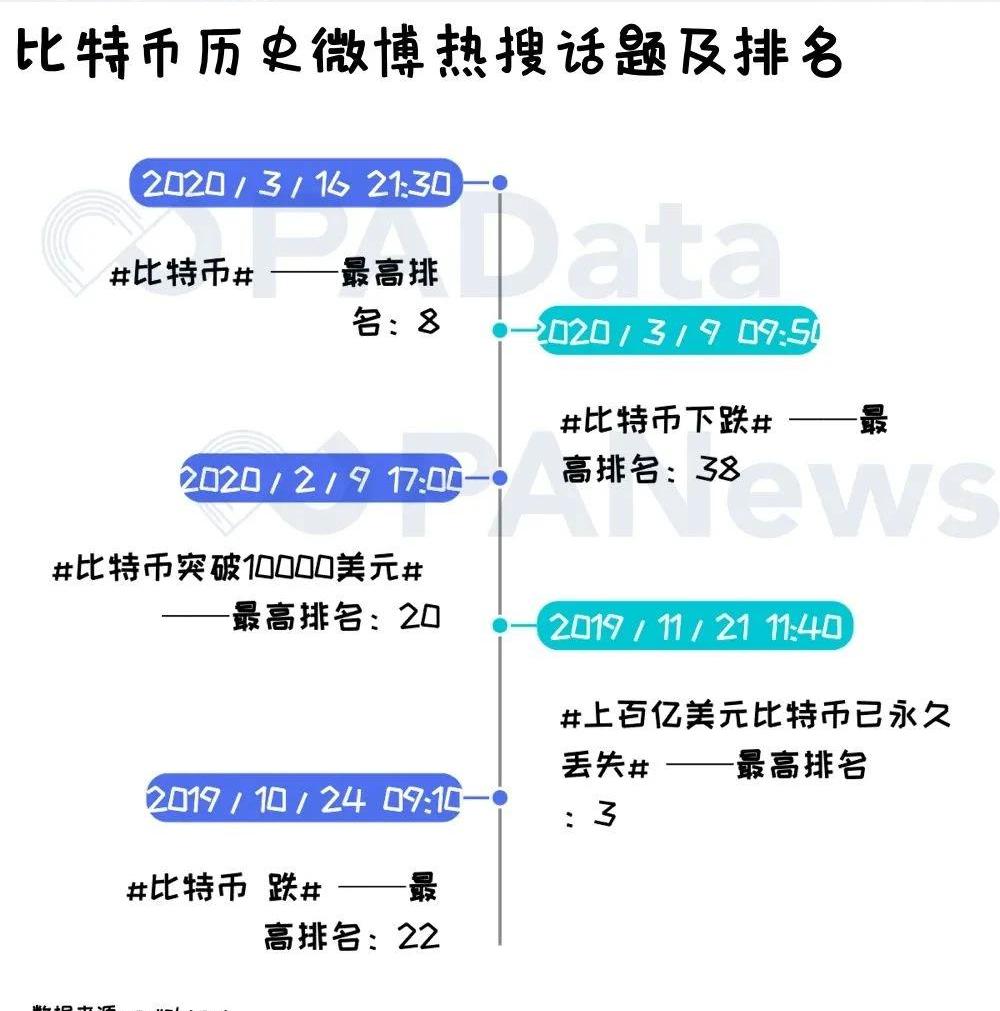 分析師|Carol視覺設計|Tina、Carol編輯|畢彤彤出品|PANews受新冠疫情持續蔓延的影響,投資者對經濟發展的預期惡化,避險情緒高漲,風險資產被拋售,避險資產也未能幸免。美股史無前例8個交易日熔斷4次,國際油價跌向20美元/桶,國際金價一度跌至1451.1美元/盎司近四個月的低位,美元指數猶如坐過山車。全球金融市場“呼吸困難”,比特幣也不例外。3月12日24小時暴跌37%,最低跌至4100美元左右,目前回調仍然沒有回到暴跌前水平。CoinMetrics的最新報告指出,比特幣與標普500指數關聯性創新高,12日的相關系數創下歷史新高0.52,這表明加密資產市場與現有傳統市場的聯系越來越緊密。比特幣與全球資產共振,原本屬于小眾圈層的幣民一時間也與全球投資者產生了共鳴。暴跌、美股、抄底、反彈、合約、減半……PAData梳理了1617條微博,告訴你國內主流民間輿論場中,幣民都在討論些什么?史上最貴熱搜榜,5次熱搜3次是大跌