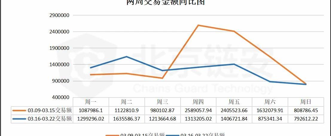 大額轉賬數:03.09-03.15:1482703.16-03.22:12067較之前一周下降:18.61%詳細數據圖如下: