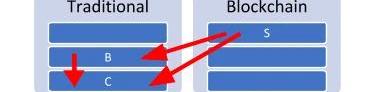 例如:S作為協議層,B作為DAPP,b作為跨鏈項目,C作為用戶。這是更具持續性,也是更有潛力、更具有吸引力的一種模式,但挑戰是在于如何分擔成本以及利潤。而有吸引力的地方則是因為這個模式有更多參與的角色,可以創作交互式的結構而不是單一方向性的結構。大多數區塊鏈項目失敗的原因是因為未能創建可持續的模式,或者即使創建也未能帶來真正的經濟價值,這相當于缺乏收入模式。因此,2020隨著傳統行業的認可,區塊鏈公司將會呈現嬰兒潮式的增長,找到進入傳統行業的途徑。與其他行業的互動:區塊鏈對比其他傳統行業的最簡化對比: