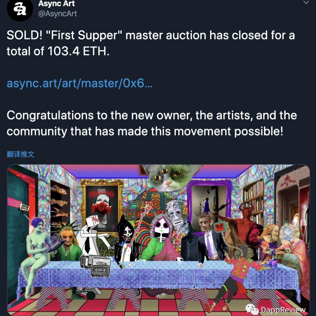DappReview的小伙伴在一個小時里,就觀測到Master的四次變化,歡迎大家一起來找茬,看看究竟哪里發生了變化。是不是很神奇?具體的實現方式我們在下面的章節中慢慢展開。對于收藏者來說如果你喜歡某個藝術家并購買了他的一幅Layer后,你就可以通過這個藝術家賦予Layer的參數來修改Layer的樣子,所有修改結果都會反映在Master上。對于Master的收藏者,你不但擁有這張畫整體的所有權,同時各個Layers的擁有者和藝術家都在為你”打工“,創造著無數張不同的畫。對于藝術家藝術家可以設計藝術品中或大或小的參數,這個參數可以由Layer的擁有者輸入或者改變。這是一種簡單的可編程藝術,藝術家可以盡情地發揮想象力。查看AsyncArt信息和數據:https://dapp.review/下面來聊聊FirstSupper的拍賣